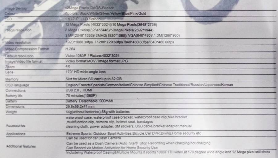HD Action Sport DVR & Camera - Waterproof, LCD Screen, Helmet Mount, Waterproof Casing, White/black