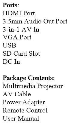 HD LED Multimedia Projector & Home Theater Cinema & Remote - AV, TV, VGA, HDMI, USB, SD, WTC