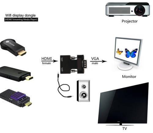 HDMI to VGA Adapter Convert HDMI signal source into VGA signal and audio signal