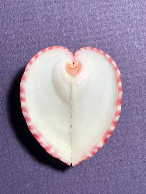 Superb GIANT Heart Cockles – approx. 40 mm by 33 mm. Very few available of this size. Please note that valves have been glued together to avoid halves opening. If you want to open the shell, sit it in boiling water for a few minutes and you can ease them apart.
