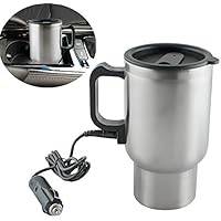 Features: 100% brand new and high quality!plugs into your cars cigarette lighter, fits in most cars. Stainless steel cup and can keep warm water, tea, coffee. Just follow your cigarette lighter, it can work. Safety lid, the water will not overflow moth. Specifications: condition: newcolor: silver and blackmaterial: stainless steel height: 16cmdiameter: 8.5cm net weight: 242gpackage included: 1 x stainless steel heated travel cup1 x cable