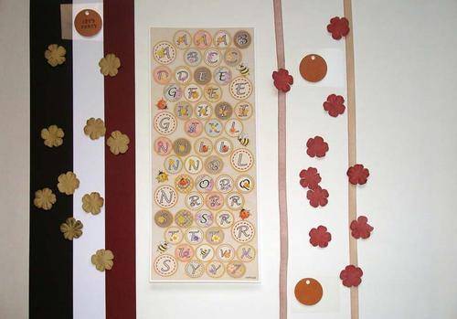 Autumn Colours Set with 12"x12" cardstock (colours: white, cream, beige, maroon, black), Alphabet stickers, maroon & khaki paper flowers, round metallic copper tags plus brown and tan organza ribbon