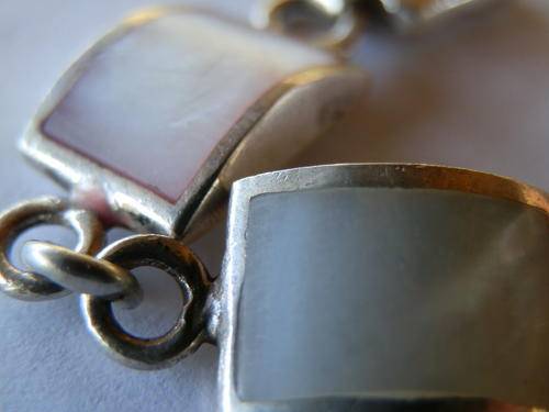 What a sweet sterling silver bracelet, in good condition. The soft colors of the mother of pearl is simply lovely.