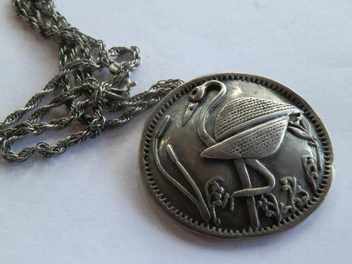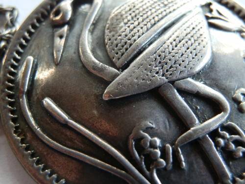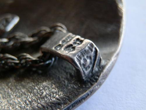 Very interesting sterling silver pendant and chain, in good condition, both pendant and chain marked 925, size of pendant 4.2 cm diameter, length of chain 51 cm and the total weight is 21.2 g, really an intriguing piece