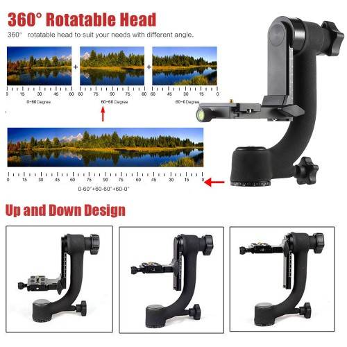 This 360°panorama gimbal tripod head is really designed for DSLR cameras and telephoto lens. With its durable aluminum alloy, the maximum load of this tripod head is up to 20kg.