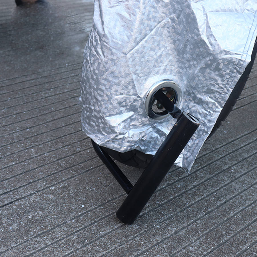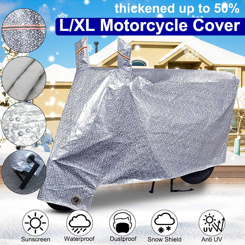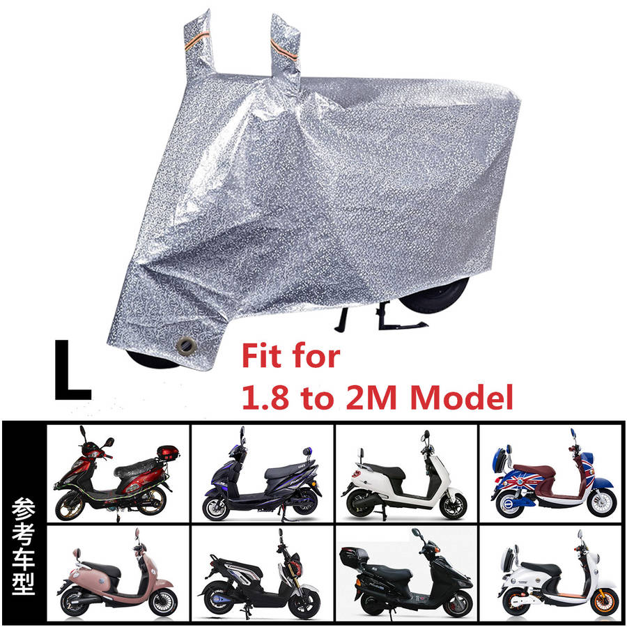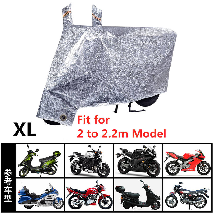 Description: Waterproof cover protector for motorcycle/Scooter Night Light Reflector & Anti-thief Design. Protect your valuable motorcycle from sunlight / water./ dust/ Leaves ect. Easy to assemble and disassemble. Waterproof and durable material. Suitable for indoor & outdoor use. Aluminum film material, does not hurt the car paint, sun protection, heat insulation, rain and snow, wind and dust, anti-scratch, anti-UV, strong tensile strength. Inner linters: inner layer of high-density lint, which can better protect the paint and prevent the paint from being scratched. All weather protection: Spring: sand-proof, preservative dust, anti-pollen, anti-tree oil, anti-guano, insect ants and animal claws damage to the car; Summer: anti-ultraviolet, anti-radiation, anti-acid rain, anti-exposure, prevent fading of paint surface, smudge,
