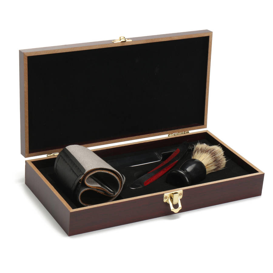 Package Included: 1 x razor 1 x brush 1 x Sharpening belt 1 x wooden box