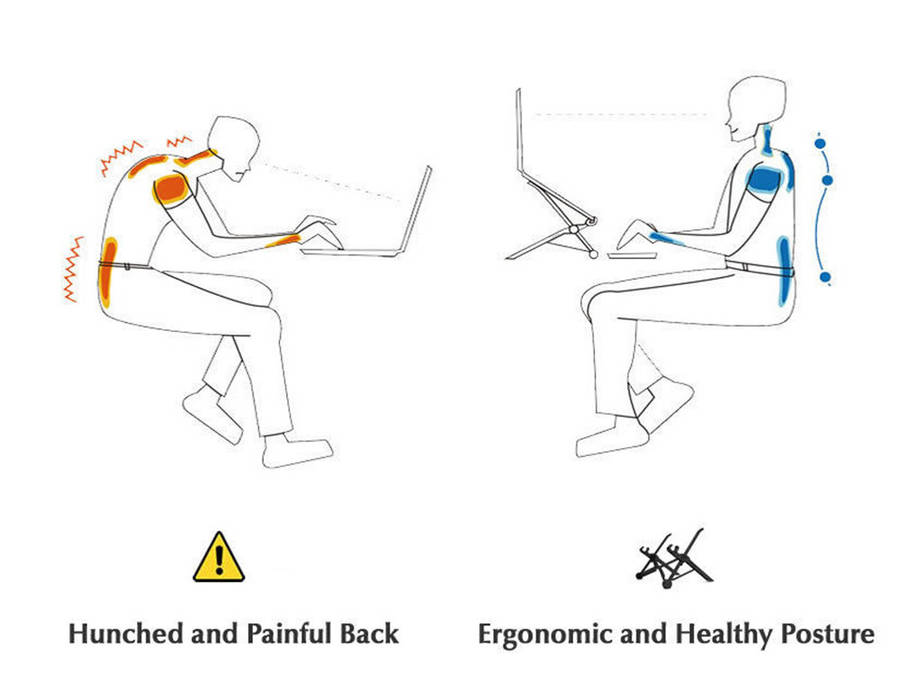 Raise up your laptop screen to your eye level so you do not hunch your back