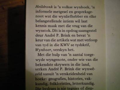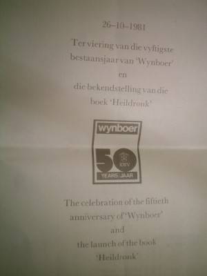 Description: Tafelberg. 1981, First edtion. Hard cover with dust jacket. Including a menu from the dinner celebration of the 50 years celebration of Wynboer and the launch of the book. Conditon: Very good in very good cover. Very minor spotting to the prelims otherwise a good, clean tight copy.