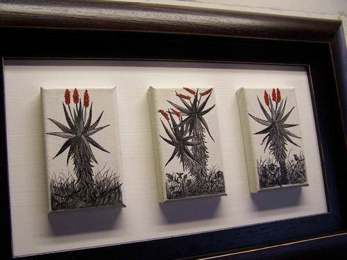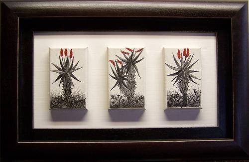 Original trip-tych by Heinrich Muller much acclaimed artist, who has had numerous exhibitions. Each panel is 12.5x8cm, outer framed size 52x34cm