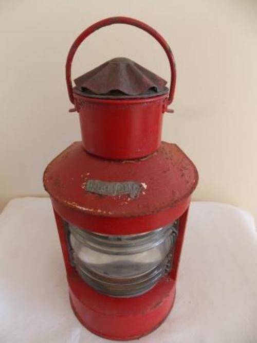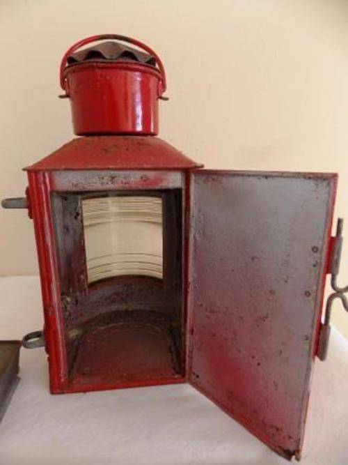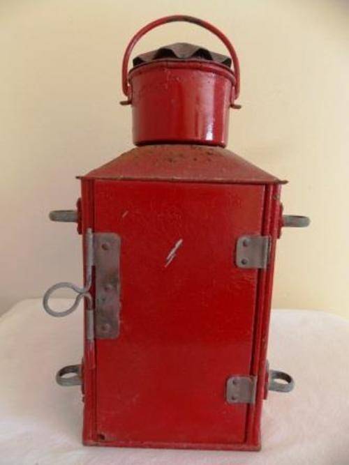 HEKLICHT STARBOARD SHIP STERN OIL LAMP. TWO SMALL CHIPS ON THE GLASS. NOT TESTED. HEIGHT 40cm BOTTOM DIAM 19cm. SHIPPING COSTS R70.00