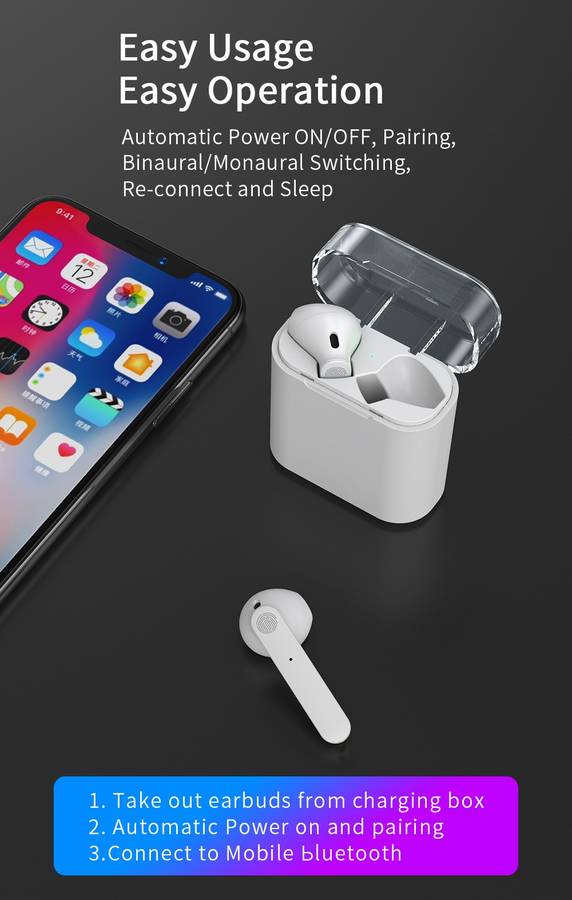 4.Automatically paired with both earbuds and automatically switched, no master-slave constraints, seamless switching between left and right