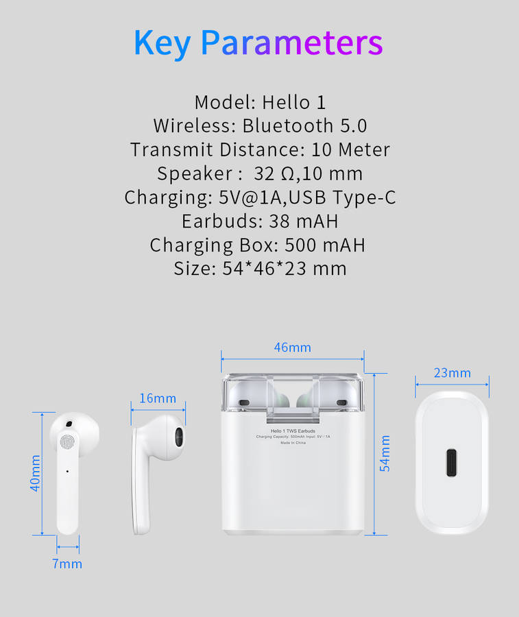 ![]() | 1*Hello 1 TWS bluetooth 5.0 Earphone HiFi Stereo Touch Control Earbuds |
