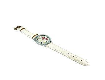 Hello kitty design, watch is soft and comfortable to ware. It has a stainless steel back with a large tempered scratch resistant glass face.