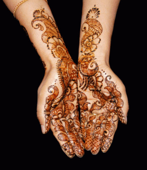 In India, a bride is adorned with henna as a test of her patience. She cannot touch anything until it is completely dry. She must be fed and pampered. In an all girl’s celebration, the bride’s closest friends and relatives typically decorate her palms, arms, and feet. For as long as the henna stays on her body, she is treated like a princess and not allowed to work. In a cute and romantic ritual, the tattoo artist hides the initials or name of the groom somewhere in the midst of the vines and flowers. It is up to the new husband to find his name on the wedding night.