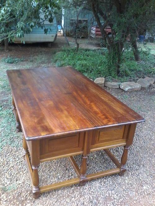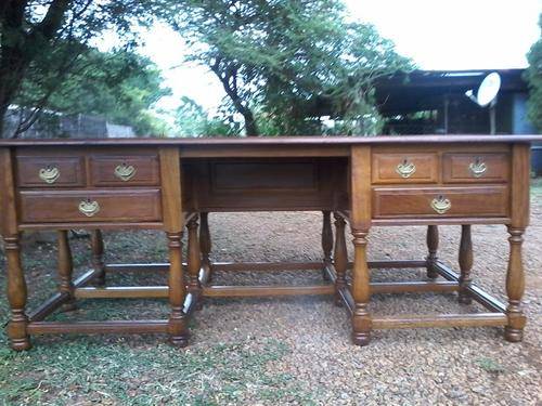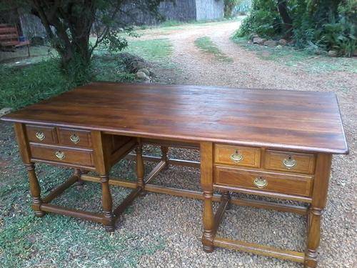 Sir Herbert Baker designed these desks with the union buildings around 1910 .They were used in the Union buildings and also by very senior officials in other parts of government . This one is made from teak (medium brown) . Its unreal to see how well it was constructed .Solid teak panels all round , thick stretcher (double bevelled .) and and +++