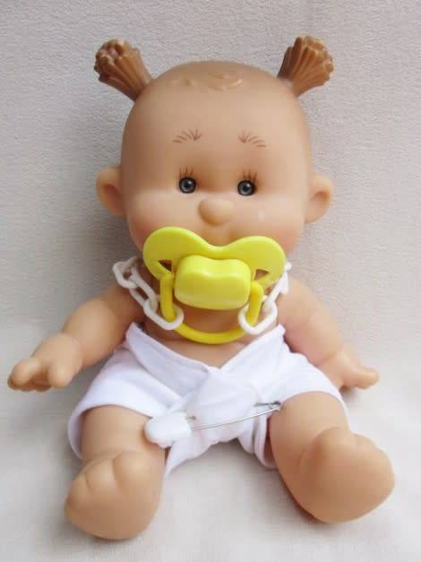 24CM TALL WITH MOVEABLE HEAD, ARMS AND LEGS. I CAN UNDERSTAND WHY THESE YOGURTINIS DOLLS ARE SO COLLECTABLE - CUTE BEYOND WORDS! YOU GET TERRY STRAWBERRY, MARY CHERRY, JOHN LEMON, CHARLIE COCONUT, CHER PEAR AND THEN THIS LITTLE ONE - ANNA BANANA, EACH LIGHTLY FLAVOUR-SCENTED. SHE IS IN GOOD CONDITION STILL WITH A VERY SLIGHT WHIFF OF BANANA SCENT AND A CHUBBY, ADORABLE LITTLE DOLL REFER IMAGES