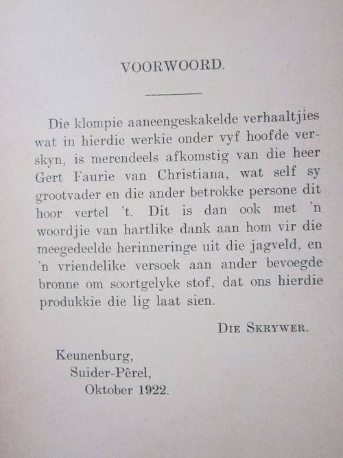 1922 sagteband 92 bladsye,(staplebound) die sagteband is effens verweer en het verbleik aan die rugkant naam en adres voor in boek, die bladsye is liggies vergeel en daar is n paar vlekkies weens ouderdom, die teks is skoon en die binding goed- geen oorsese versending