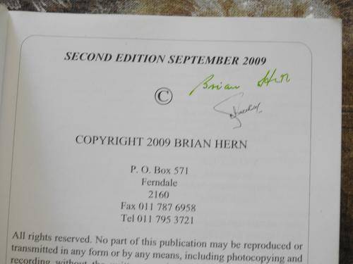 The book is signed by Brian Hern and S Africa's top token coin collector Allyn Jacobs (see image below)