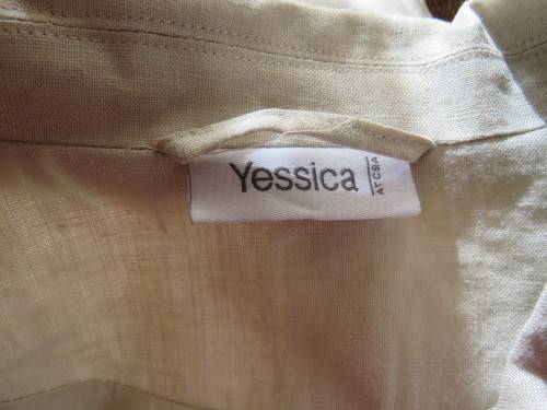 High class beige 100% linen jacket in peplum style. With embroidery. By Yessica size 37/13