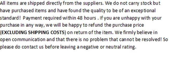 R65.00 Standard shipping applies to orders under R100.00, in most areas in South Africa. R35.00 Standard shipping applies to orders over R100.00. Some areas may attract a surcharge surcharge. This will be calculated at checkout if applicable. Check my rate