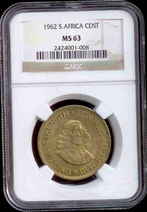 Description: SOUTH AFRICA Category: WORLD COINS Denomination: CENT Year/Mint: 1962S.AFRICA Variety: Designation: MS Total Graded: 23 Census Detail