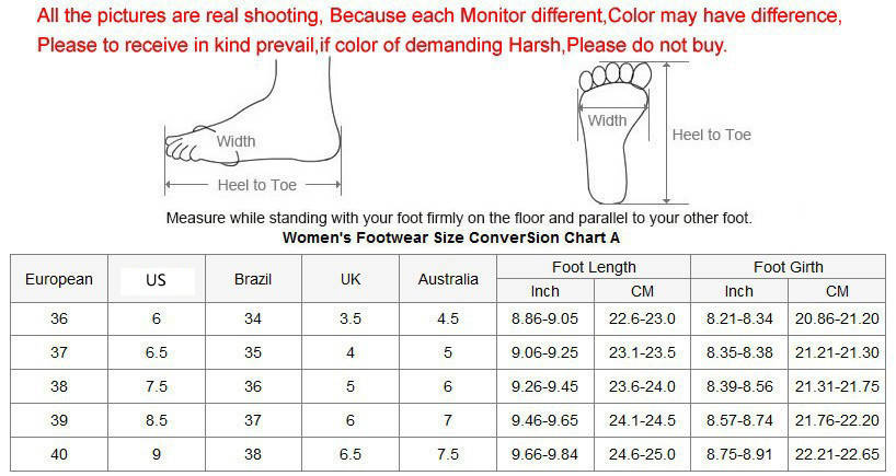 Please Measure your feet , according to the fit feet size(cm)in the chart to choose your shoes size.