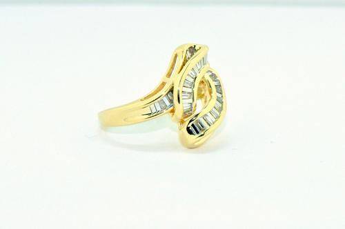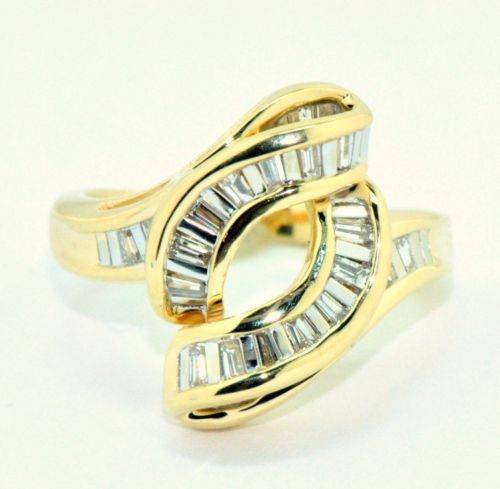 HIGH KARAT GOLD!!!!SOLID GOLD RING 14KT YELLOW AND WHITE GOLD BAGUETTE .65CTW DIAMONDS CLUSTER RING