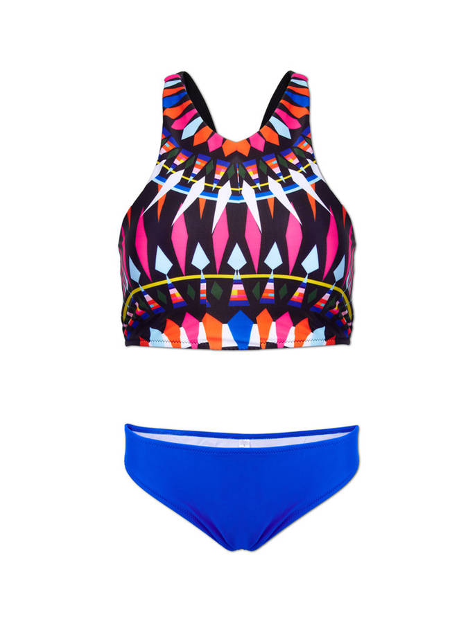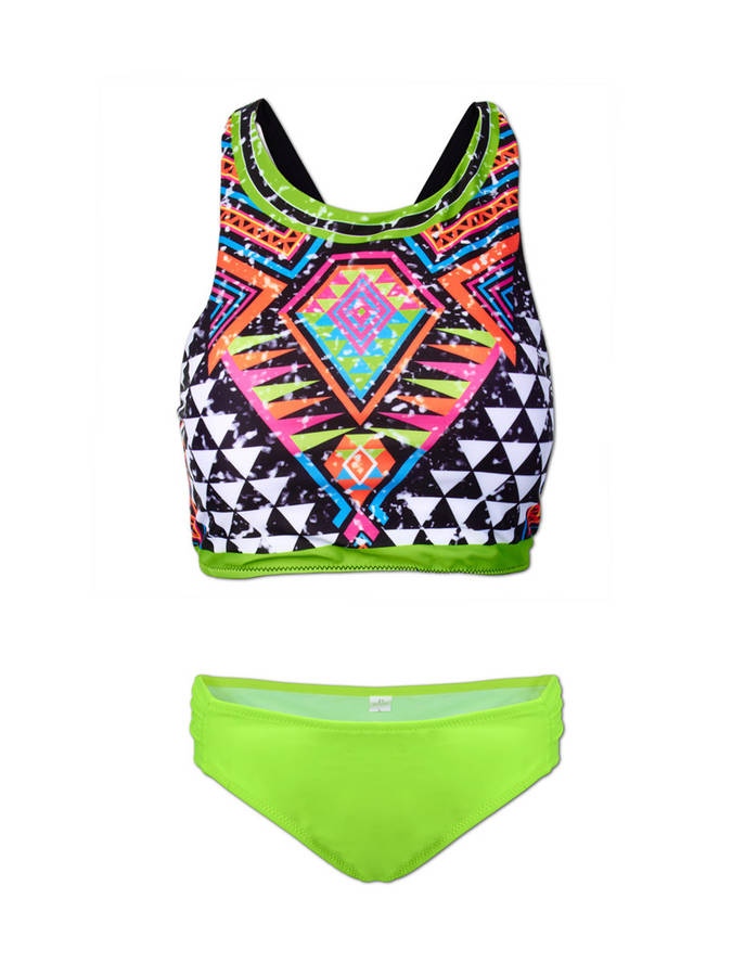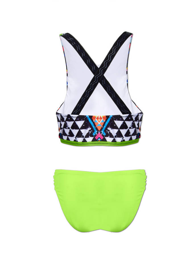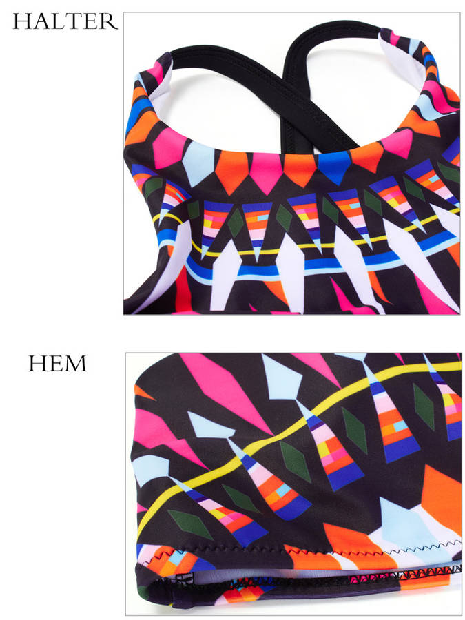 High Neck Geometric Printed Women Tankinis Swimwear (COLOR: GREEN | SIZE: S)