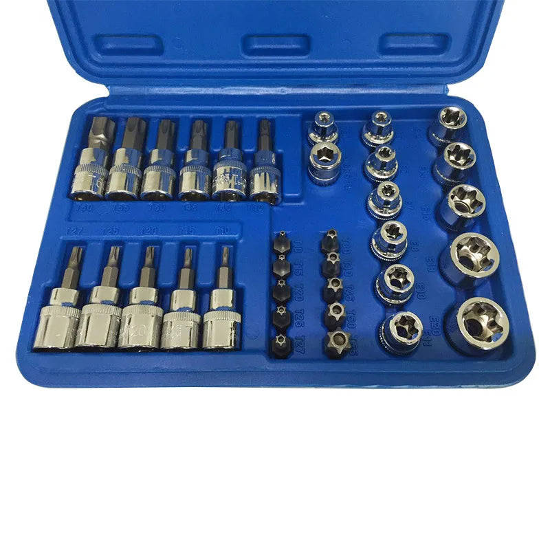 High quality 34pcs chrome vanadium steel press batch sleeve star E socket Torx bits holder