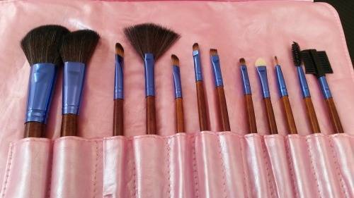 High quality make-up brush set for the professional artist. The bristles are soft and the pouch is a soft luxurious faux leather in colors pink or red depending on availability.