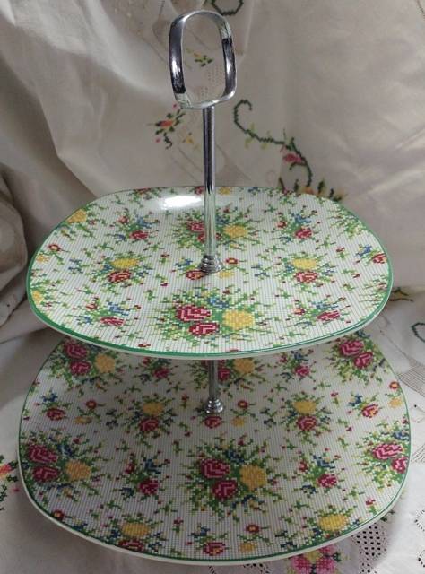 Beautiful and delicate Chintz Rose 2 tier Cake stand in very good vintage condition.
