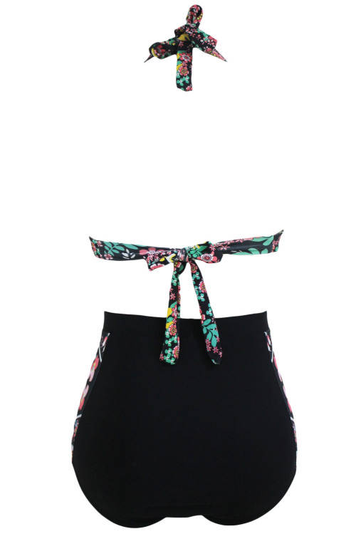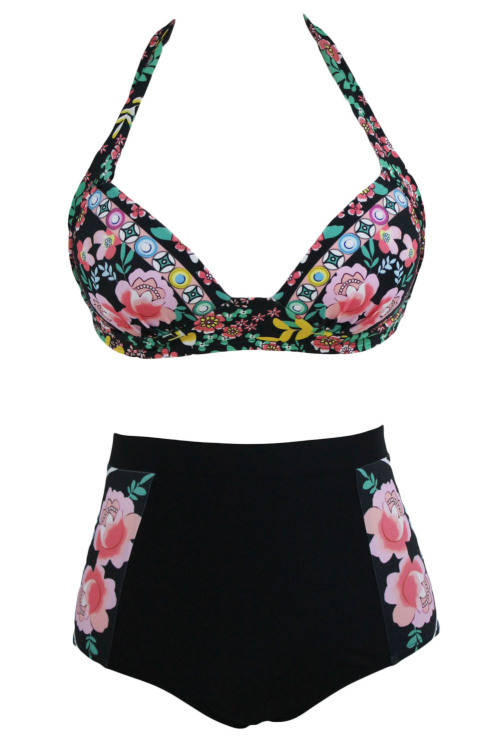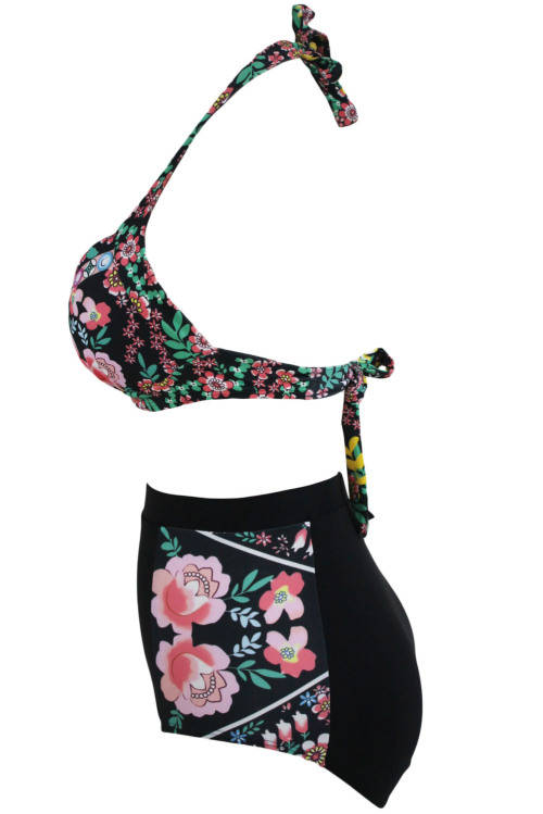High Waist Retro Floral Print Padded Bikini Swimsuit Costume Beachwear