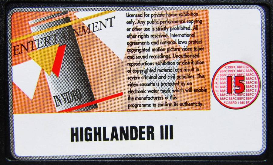 Highlander 3 - Movie VHS Tape.