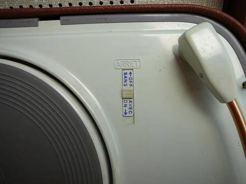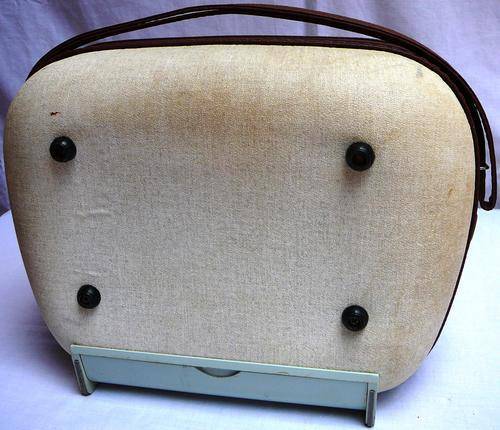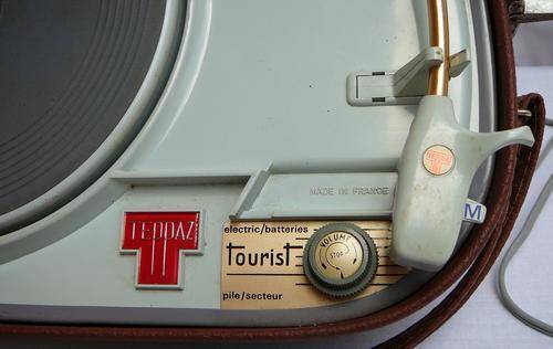 This Vintage circa 1950's TEPPAZ TOURIST Portable Record Player is in very good condition, it is designed to work off 220 v or 6 x Torch Batteries. IT DOES WORK ON 220 V, but we have not tested it with batteries. Every thing appears to be present including the original wire. It has a variable speed setting, we have only tested it on Vinyl LP's 33 1/3.