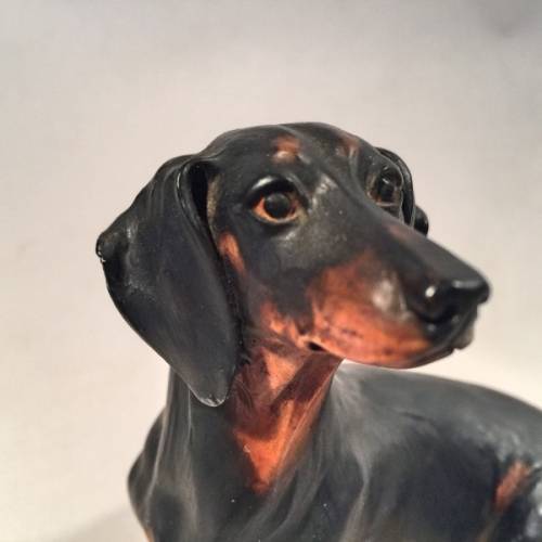 Highly Detailed Black and Tan Ceramic Dachshund Figurine