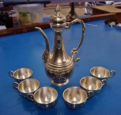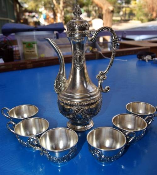 Highly Ornate Turkish Coffee Set Coffee Pot with Lid and 6 Cups