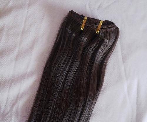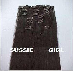 Synthetic Clip in on Hair Extension Kanakalon High Temperature Fibre 7pcs 100g 1set 60cm #6 Medium Brown Silky Straight