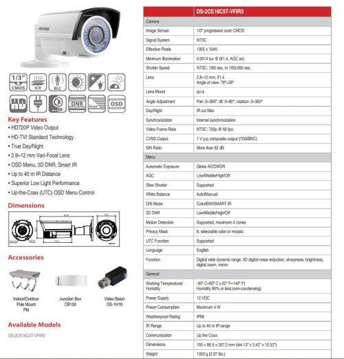 Hikvision DS-2CE16C5T-VFIR3 720p CCTV camera