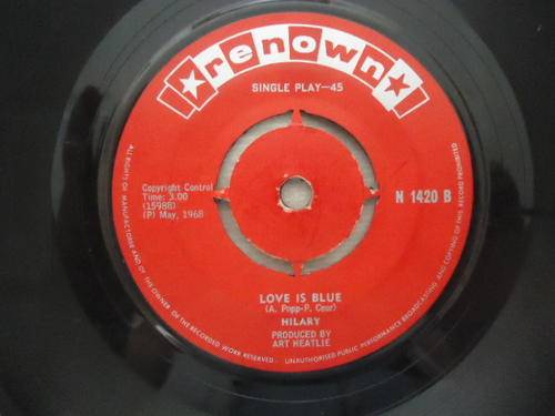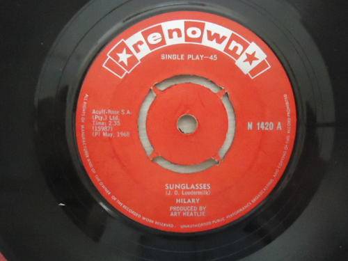 ON OFFER IS THIS HILARY SEVEN SINGLE "SUNGLASSES B/W LOVE IS BLUE" - 1968 RENOWN 45 RPM SEVEN SINGLE SUPPLIED IN A SEVEN SINGLE SLEEVE