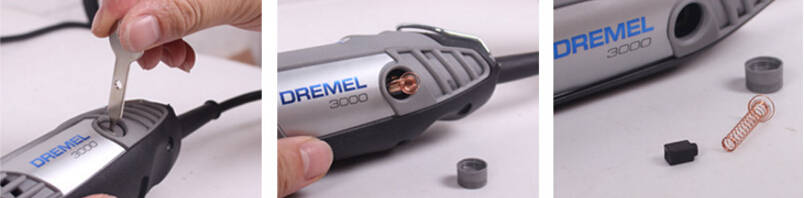 Step 1: Use the wrench to open the cover of carbon brush. Step2: Take out the carbon brush. Step3: Replace with the new carbon brush. Step4: Use the wrench to lock the cover well. Package Included: 2 x Carbon Brushes
