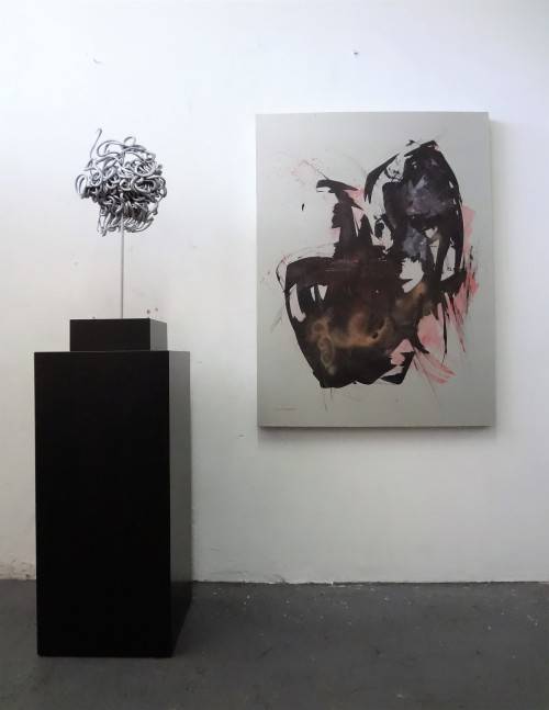 MIXED MEDIA & METALLIC GERMAN SILVER PAINT ON STRETCHED CANVAS