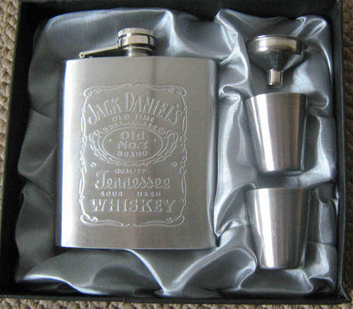 Hip flask stainless 200ml steel. Gift box presentation