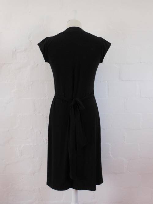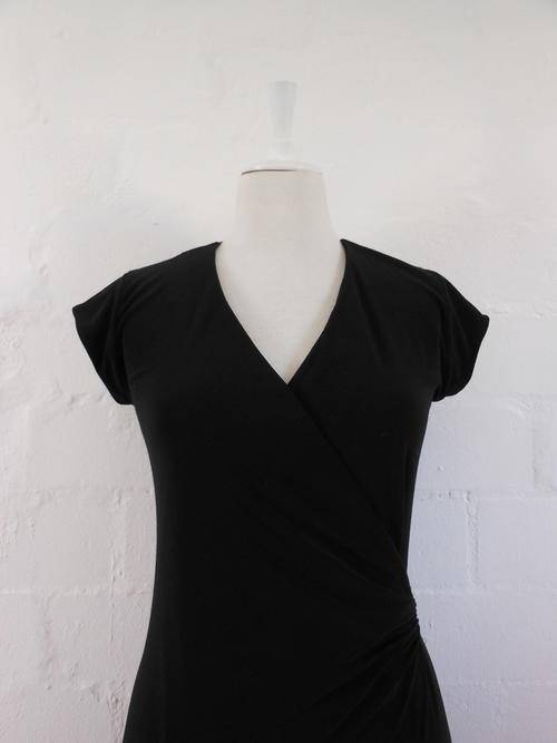 HIP HOP DESIGNER BLACK SHORT SLEEVE WRAP COCKTAIL DRESS - SIZE 10