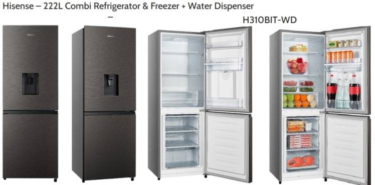 Description Hisense Fridge Freezer Combination 222 Litre Capacity with Water Dispenser