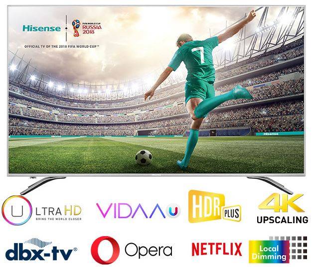 HiSense 55" Premium UHD Direct LED Smart TV – Resolution 3840 × 2160, Native contrast ratio 4000:1, Viewing Angle (Horiz / Vert) 176/176, Built-in Wi-Fi 802.11b/g/n/ac, Ethernet Lan port (RJ45 connector), 3x HDMI inputs, 2x USB ports, Retail Box , 3 year Limited Warranty.