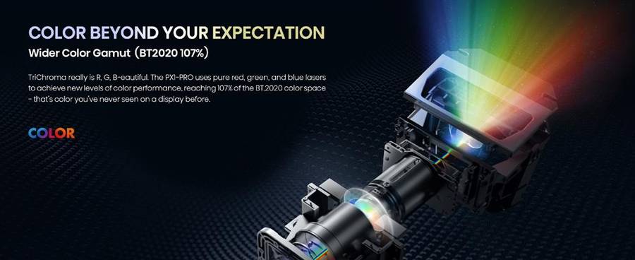 The PX1-PRO features the award-winning TriChroma laser engine to achieve full coverage of the BT.2020 color space for a true-to-life picture. With its Digital Lens Focus the PX1-PRO delivers a razor-sharp 4K image in sizes from 90 to 130-inches. Add to that premium features eARC for lossless audio, Filmmaker Mode, and smart home integrations and you've got yourself an Ultra Short Throw brimming with entertainment potential.