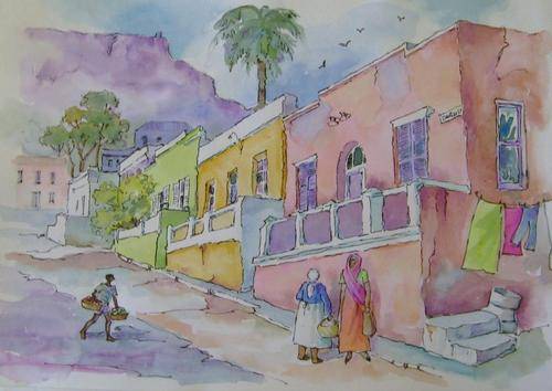 HISTORIC, NOSTALGIC WATERCOLOUR OF MALAY QUARTER, CAPE TOWN