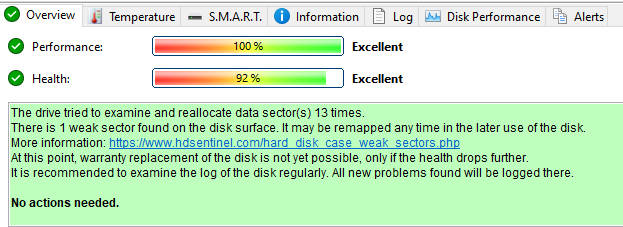 Hard disk sentinel reports minor issues but drive works fine was used in a laptop. See sentinel hard disk report screen shot.