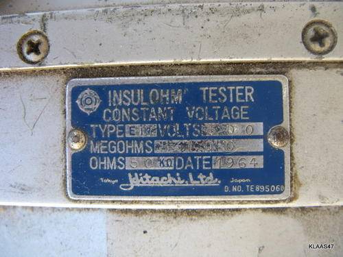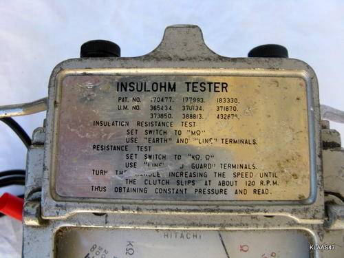 HITACHI : INSULOHM TESTER : MEGGER "MEG" TYPE HAND CRANK INSULATION TESTER